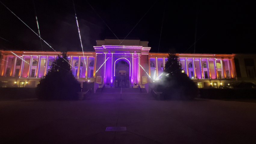 In 2021, we provided our laser mapping services to Scott's Bluff National Monument & the Oregon Trail Community Foundation. They started a fundraising campaign for the local communities, and our laser show kicked off the Ignite Giving Campaign. Dynamic FX created animated sequences into laser graphics and projected them using distributed laser technology, a system designed to handle complicated graphical programming with multiple laser projectors. This system ensured enough extended light coverage to illuminate the entire bluff, given the height and width restraints of a single laser's output.